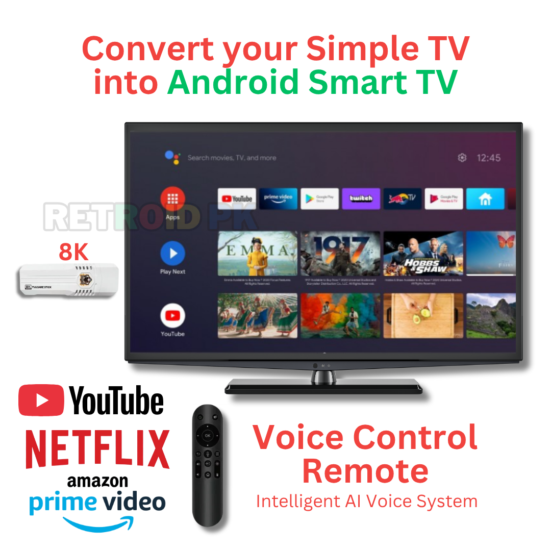 8K HD Android TV + Retro Game Stick with Built-in Wi-Fi 40000+ Games Including Need for Speed