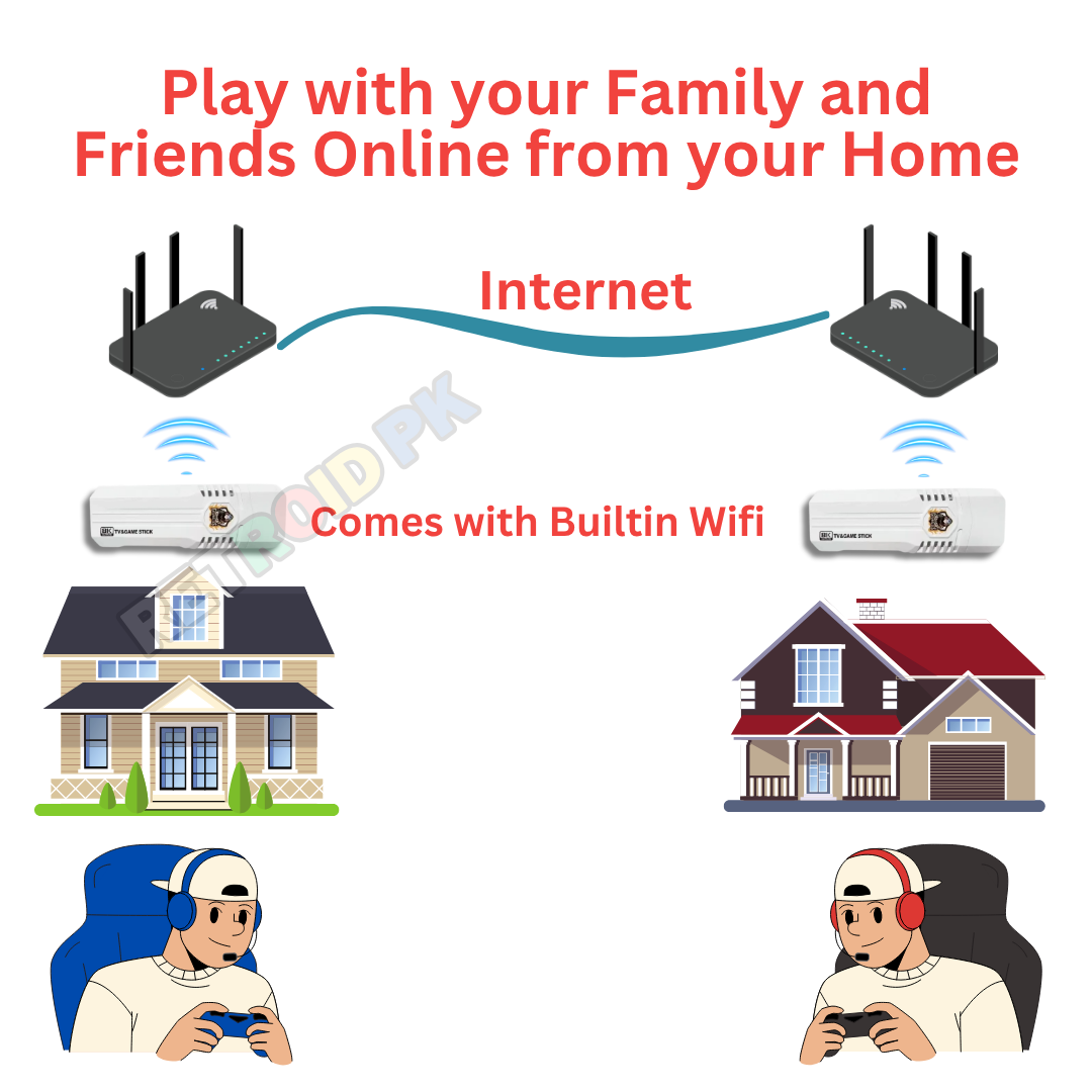 - 🕹️ Online Multiplayer Gaming – This is the only Gaming Stick that supports online Gaming with the Comfort of sitting in your own Home while your Friends from their own.